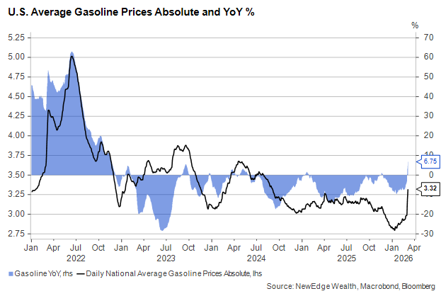 To wit, U.S. equity and credit market have acted as a bulwark against Iran-related risk, at least in the opening days of this war. We agree that the transmission from the conflict as it currently stands to the bottom lines of U.S. companies and consumer balance sheets should be limited provided oil prices come back down in relatively short order. Gasoline prices have risen high enough to be somewhere between a nuisance and a burden for U.S. households, but they have not been at these levels long enough to significantly impact the economy by forcing households to spend less in other areas: