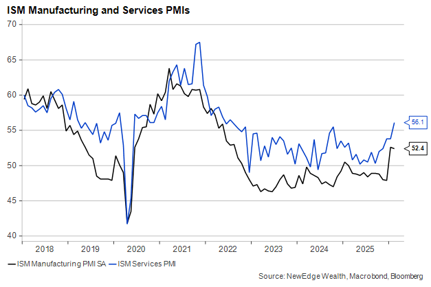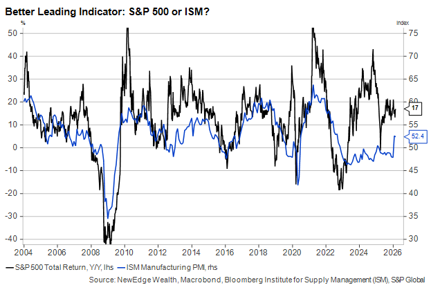 Whenever we mention the ISM these days, we must stress that the Manufacturing survey had until recently been in contraction mode over a three-year period that boasted above-trend growth. Still, despite their divergence in the 2020s, the ISM and the S&P 500 tend to move in tandem, as both are considered reliable leading indicators for the economy.