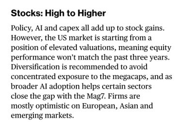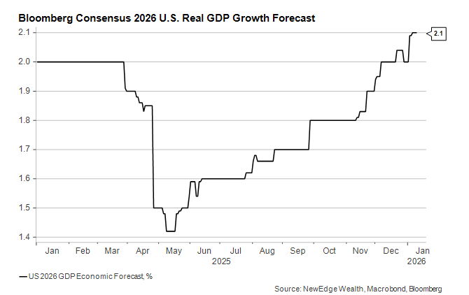 Of course, we are not alone in wanting these outcomes for the US economy and global markets (though another rock band from across the pond reminds us that “you can’t always get what you want”), and we can see this popular desire for another strong year by assessing consensus forecasts for 2026.