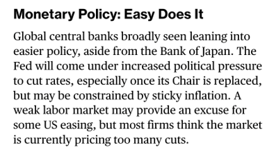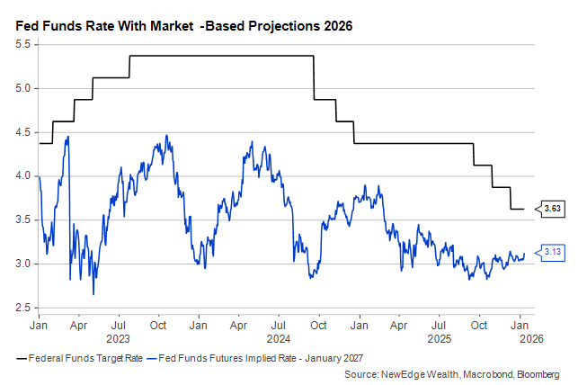 Markets have, for now, settled on almost exactly two more rate cuts as the baseline expectation for the Fed this year, with the first cut fully priced in for June. By this time, there will almost certainly be a new Chair in place, but there will also be six more months of economic data to chew on.