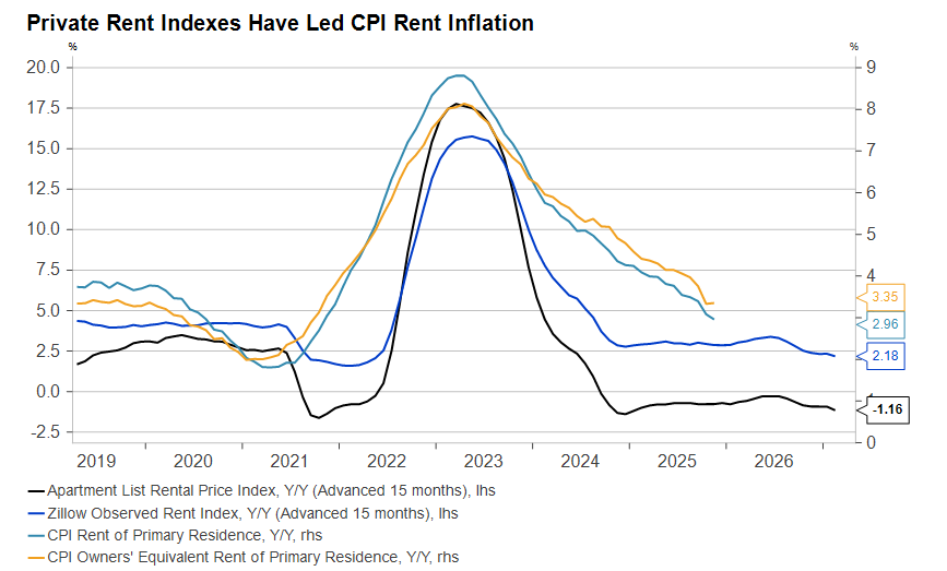 3. Consumer Spending Faces Falling Real Income Growth: Consumer spending growth remained resilient in 2025 in the face of resurgent goods prices and a weakening labor market. Ultimately, however, the same gravity exerting downward pressure on wage growth will affect housing spending, as well. Falling real income growth is a key source of concern for 2026.