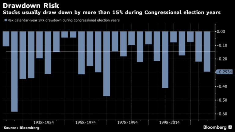 2. Potential for Drawdowns in 2026: Volatility is a feature of equity market investing, even though the last eight months have delivered very little of it. As we look to 2026, it would not be surprising to see an uplift in volatility, given the valuation and earnings dynamics outlined above, along with the historical precedent to see larger drawdowns in midterm election years. The chart below shows an average drawdown of 15% during midterm election years, which could be seen as an opportunity for investors who have liquidity to invest.